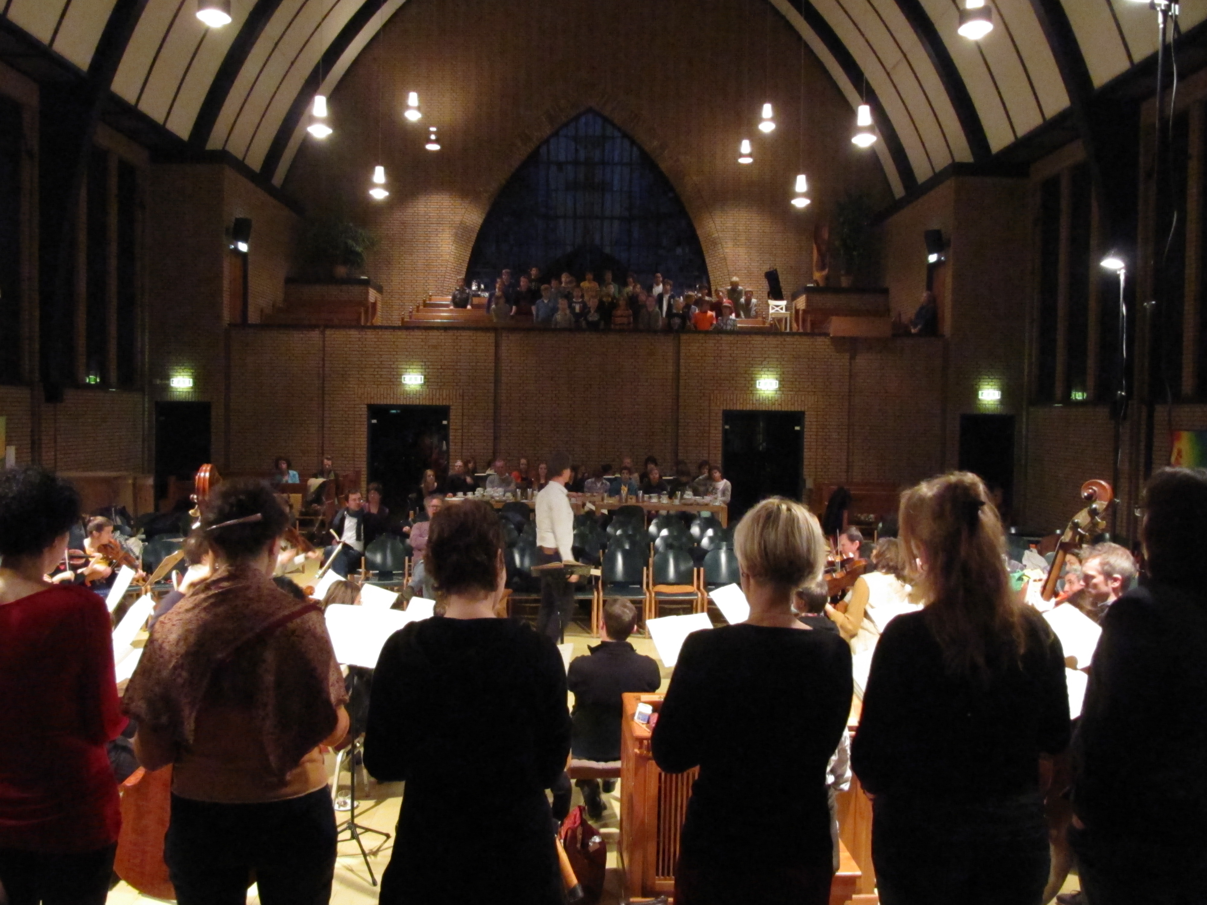 Voor mij zat de kracht van het project met name in de deelname aan het creatieve proces. Na de eerste workshop zaten de koorleden nog vol vragen maar gaandeweg liet iedereen de gebaande wegen steeds meer los en liet zich muzikaal verleiden tot iets nieuws. Iedereen had plezier en genoot van elkaar. Jong en oud trokken samen op en het was duidelijk dat de een meer zangervaring had dan de ander. Het was een bont gezelschap dat open stond voor een nieuwe muzikale ervaring. Maar toen tijdens de generale repetitie alle stemmen bij elkaar kwamen was ik ook ernstig onder de indruk van de prachtige compositie van Merlijn Twaalfhoven. Deze compositie staat niet noot voor noot uitgeschreven op papier. Voor een deel wel, maar de meerwaarde zit ‘m in de creatie van Merlijn op dat moment. Lastig om zijn muziek te omschrijven. Je moet het meemaken en dat kan op zaterdag 1 juni in de Domkerk in Utrecht.