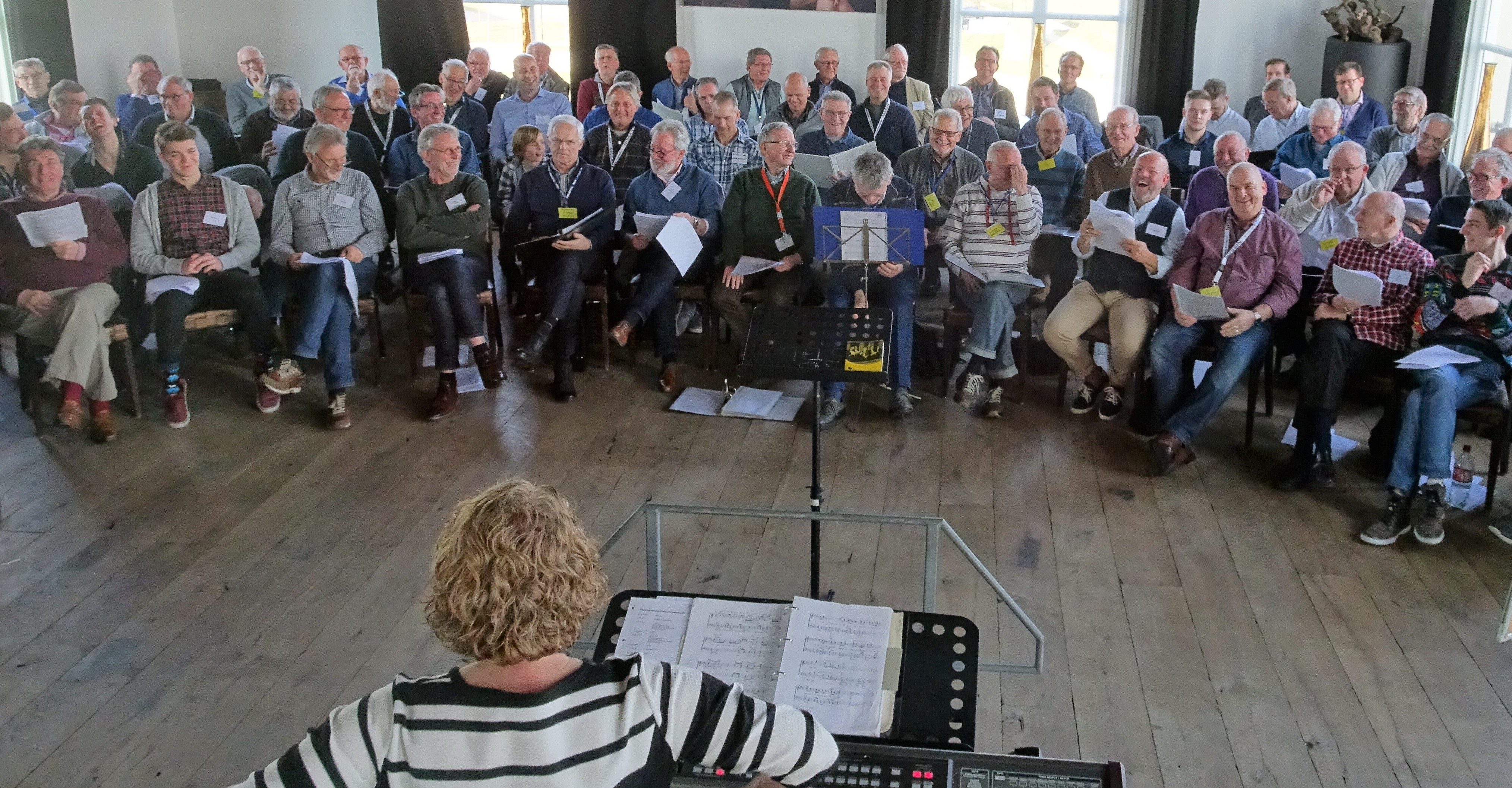 Zaterdag 17 februari organiseerde het Tiels Mannenkoor voor de tweede keer een echte Mannendag. Dat betekende dat alle koorleden introducés mee mochten nemen om gezellig een middagje mee te zingen met het Tiels Mannenkoor. Maar liefst 30 belangstellenden in de leeftijd van 9 tot 81 kwamen een kijkje nemen en zongen de hele middag mee om aan het eind een kort optreden te verzorgen voor de partners en familie. Kleinzonen, buurmannen, zonen, oude vrienden, het vriendje van de kleindochter, oud colleage, een verre neef… iedereen deed mee! Er was een korte inleiding op de zangtechniek met de nodige oefeningen, er werd wat laagdrempelig nieuw repertoire ingestudeerd en een pittig vierstemmig We will rock you werd tot een aanvaardbaar geheel geoefend zodat het publiek aan het eind goed mee kon klappen en stampen. Over ledenwerving werd niet gesproken. Gewoon alleen maar ervaren hoe leuk zingen is! Daarna zien we wel verder. Het was een ontzettend leuke dag!