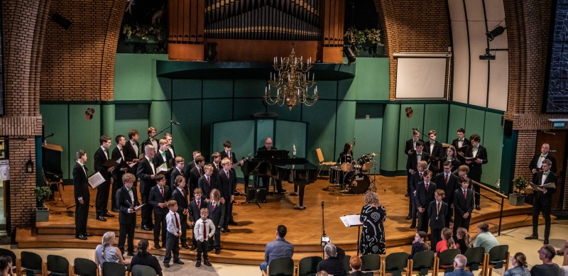 Gelukkig kon het Zomerconcert van het Stadsjongenskoor op zondag 4 juli doorgaan! De laatste keer dat we samen op het podium stonden was in december 2019. Niet lang daarna was de eerste lockdown een feit en hadden we alleen nog via Zoom contact. Veel activiteiten konden niet door gaan. De Grafschafter Chortage in Kloster Frenswegen (Dld) en ook alle Matthäus-Passionen werden afgelast. Gelukkig konden we in juni 2020 weer buiten zingen in het park en met de jongens een optreden geven in de tuin van het Racerhuis. Na de zomervakantie leek alles ‘normaal’ maar toch kon het kamp waar de jongens en jongemannen altijd zo naar uitkijken niet doorgaan. Ook de Kerstafette niet en de tweede lockdown was een feit. Weer verder op Zoom, weer geen koorweekend in Duitsland, geen Matthäus-Passionen… Zodra het weer ‘mocht’, gingen we in maart met de jongens in kleine groepjes samen zingen en zes jongens hadden het geluk mee te mogen doen aan de Marcus Cantate. In mei voegden we de groepen samen om in een half-open schuur buiten te repeteren. Het Jongemannenkoor zag en hoorde elkaar daar weer voor het eerst sinds maanden. Het grootste gedeelte van het concert dat we op zondag 4 juli gaven hebben we dus in tijdens de lockdowns ingestudeerd. Via Zoom, in de huiskamer en buiten…