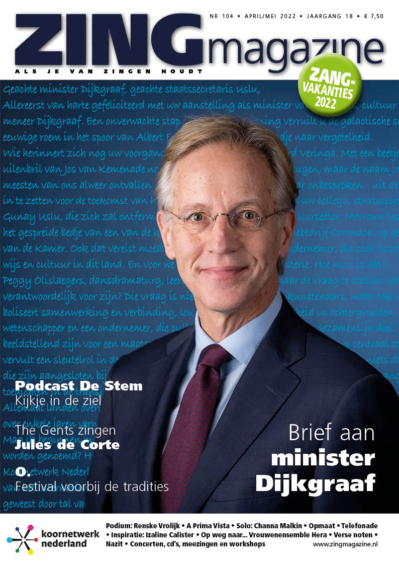 En alweer een hele mooie ZINGmagazine. Gelukkig stroomt de redactiemailbox weer vol met concertaankondigingen, workshops en festivals. Dus we zijn alweer volop bezig met de volgende editie!