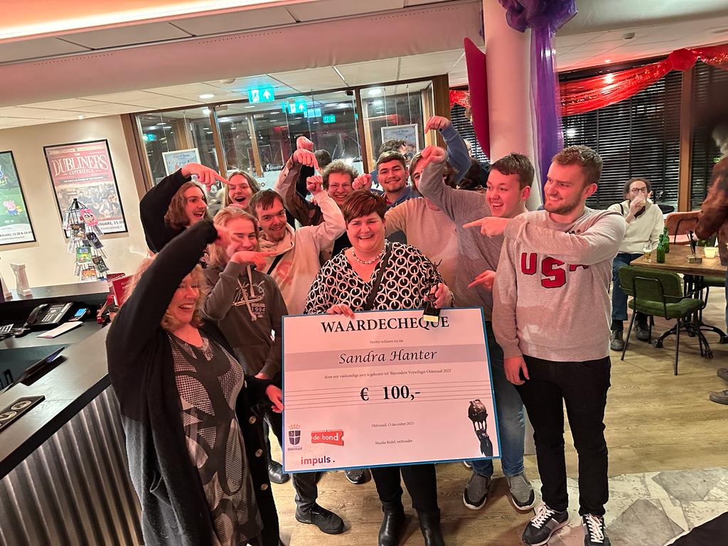 Ik ben supertrots op Sandra Hanter, koormanager van het Stadsjongenskoor Oldenzaal. Zij won afgelopen week de Oldenzaalse Vrijwilligersprijs 2023. Ik ben zo blij voor haar dat ze de waardering krijgt die ze verdient en dat ze zo mooi in het zonnetje werd gezet. Als dirigent van een koor, en zeker van een jongenskoor, kun je niet zonder vrijwilligers. Sandra staat als moeder van twee zingende zoons altijd voor iedereen klaar en kent ze het Stadsjongenskoor Oldenzaal op haar duimpje. Ze heeft een aantal jaren geleden ook de stap naar een bestuursfunctie gemaakt en ook dat doet ze met verve. Sandra gefeliciteerd!