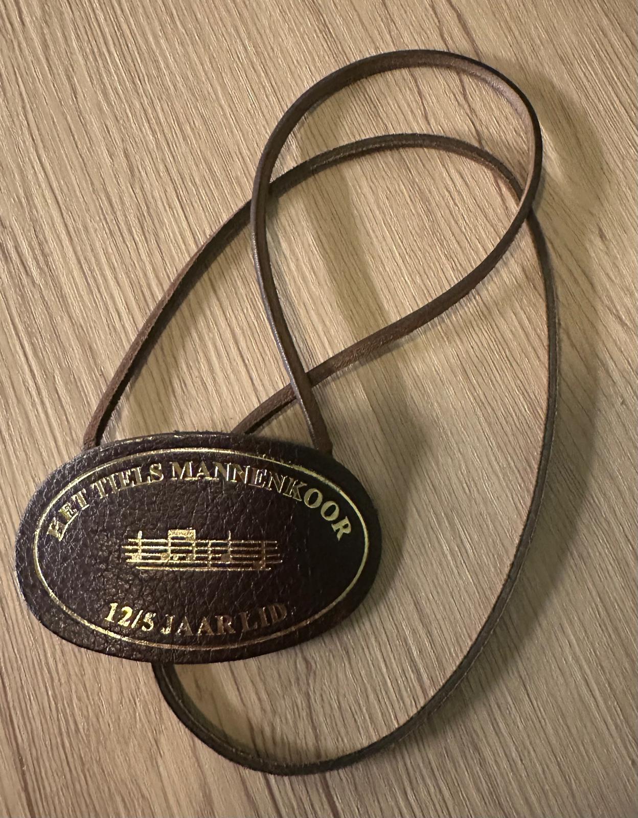 Ik zag niet ‘m aankomen: de VET LEREN LAP. Dat is de onderscheiding die je krijgt als je 12,5 jaar lid bent van het Tiels Mannenkoor.