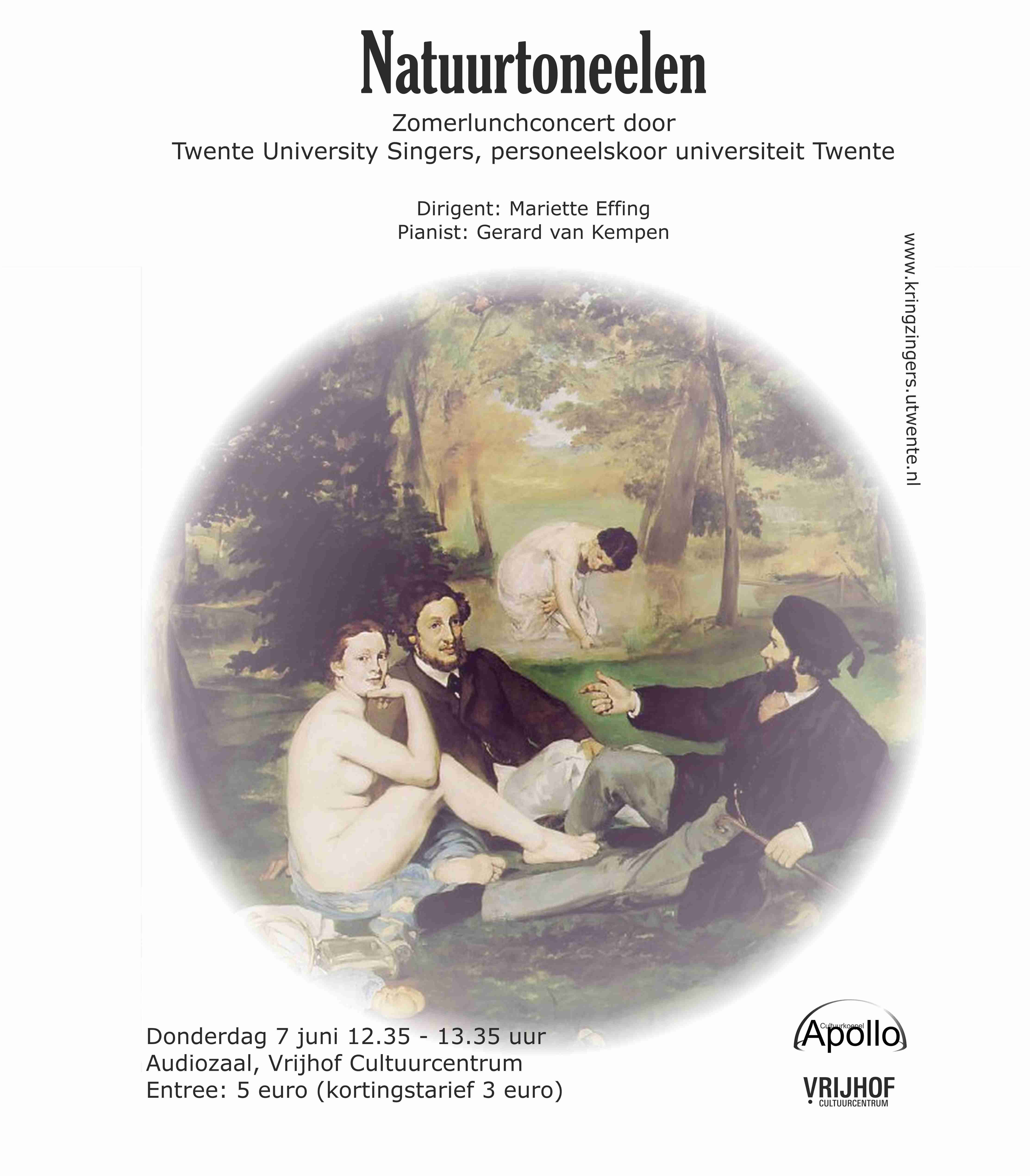 Op donderdag 7 juni 2012 gaf het personeelskoor van de Universiteit Twente, de Twente University Singers een lunchconcert in de  Audiozaal, Vrijhof Cultuurcentrum. Het concert had als thema Natuurtoneelen. In dit zomerlunchconcert zong het koor een twintigtal uiteenlopende “natuurtoneelen” waaronder enkele delen uit De Schipbreuk van de Nederlandse componist Johan Wagenaar .Het concert stond onder leiding van Mariette Effing, met medewerking van Gerard van Kempen, piano.