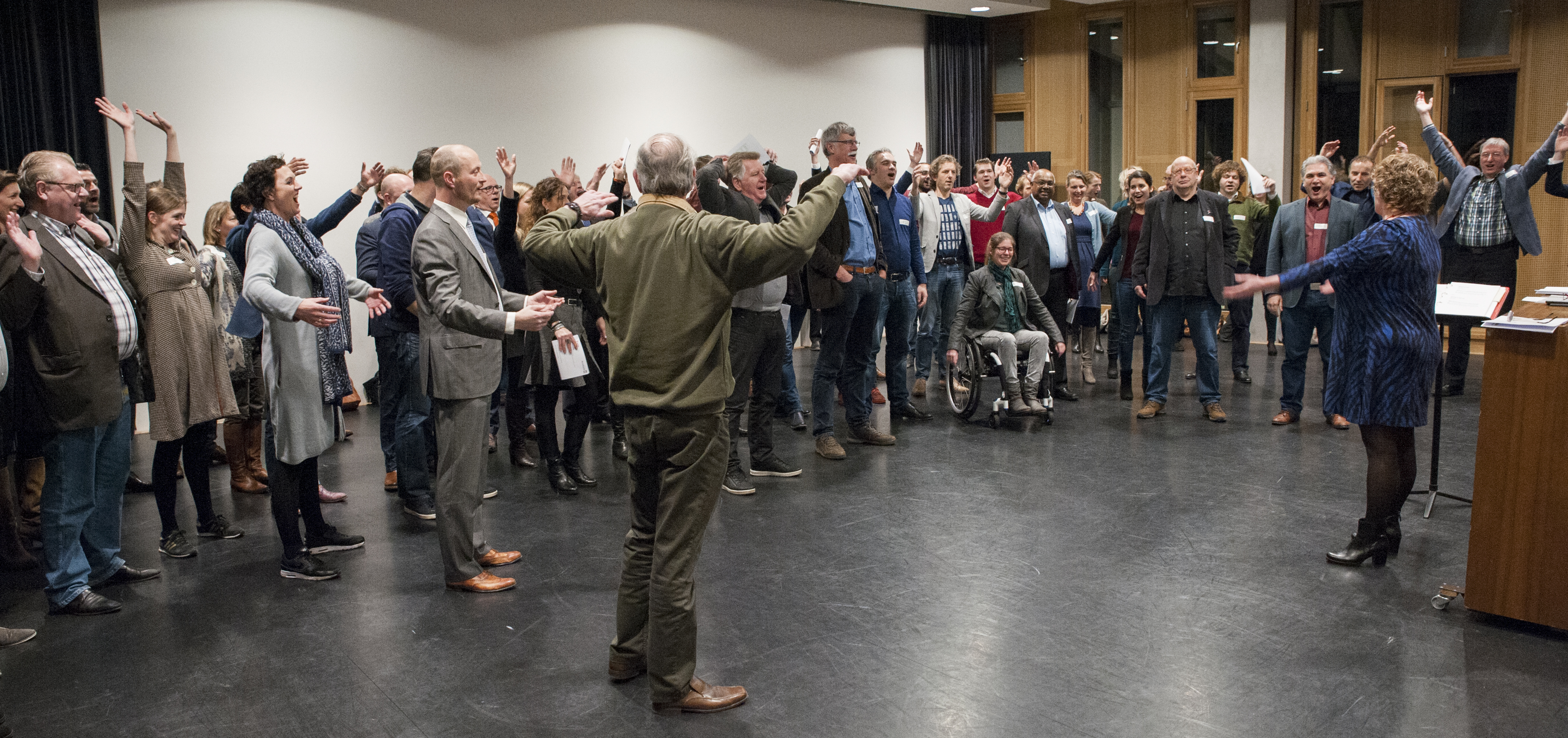 In 2017 hadden de gemeenteraden Arnhem en Nijmegen een studiedag. Aan mij de vraag om de bijeenkomst te openen met een Meet & Sing workshop om eerst de boel wat op te schudden.